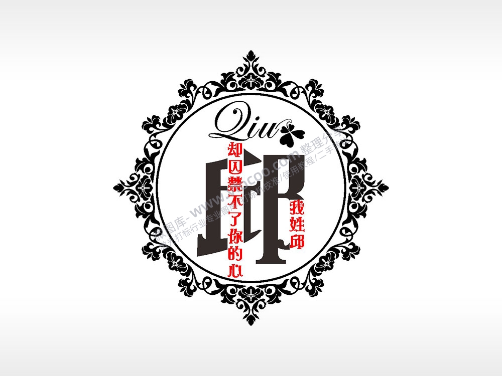 我姓邱却囚禁不了你的心爱情姓氏AI8.0格式激光打标文件通用矢量图