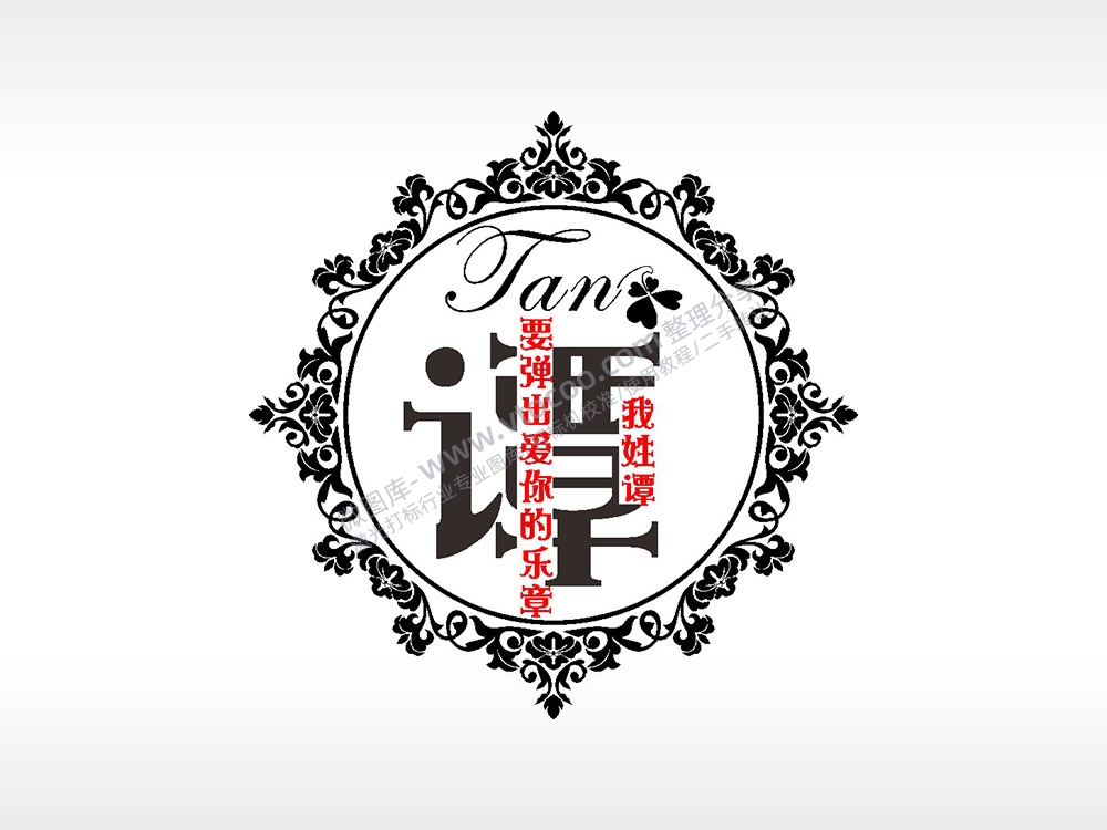 我姓谭要弹出爱你的乐章爱情姓氏AI8.0格式激光打标文件通用矢量图