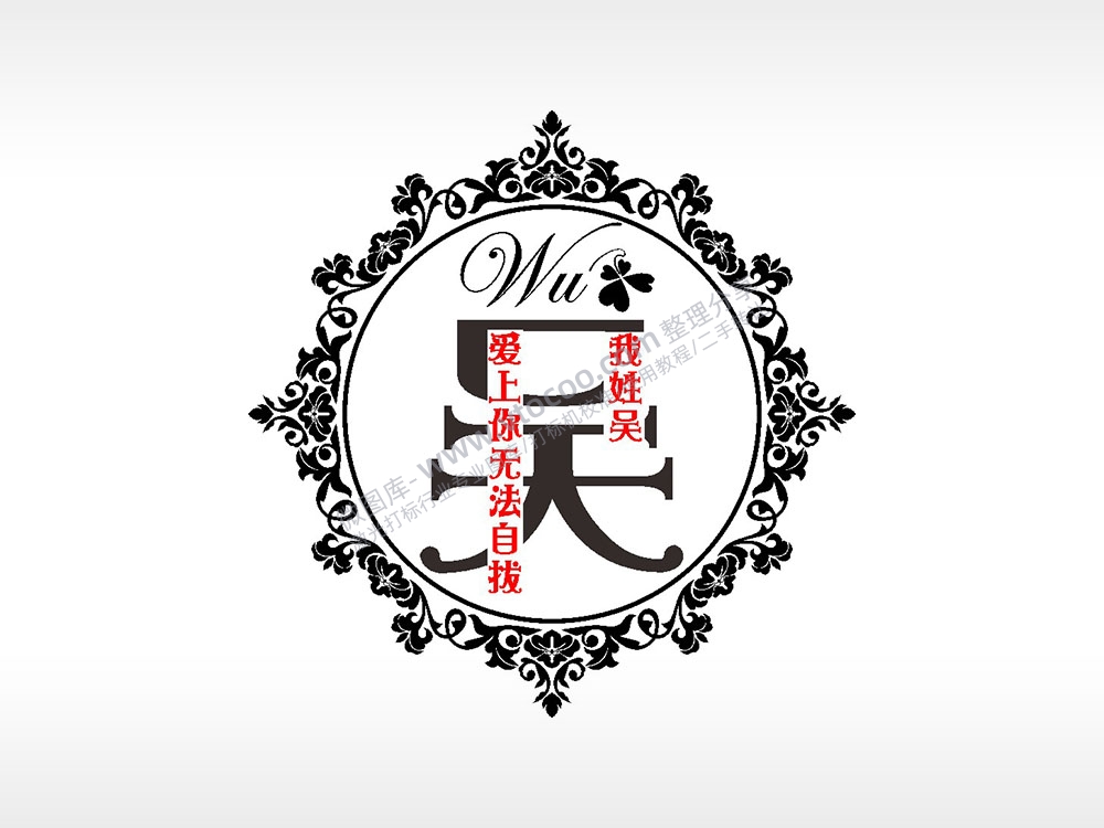 我姓吴爱上你无法自拔爱情姓氏AI8.0格式激光打标文件通用矢量图