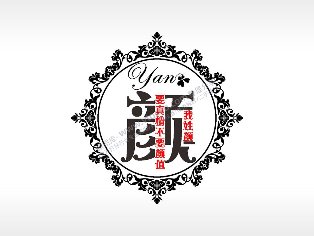 我姓颜要真情不要颜值爱情姓氏AI8.0格式激光打标文件通用矢量图