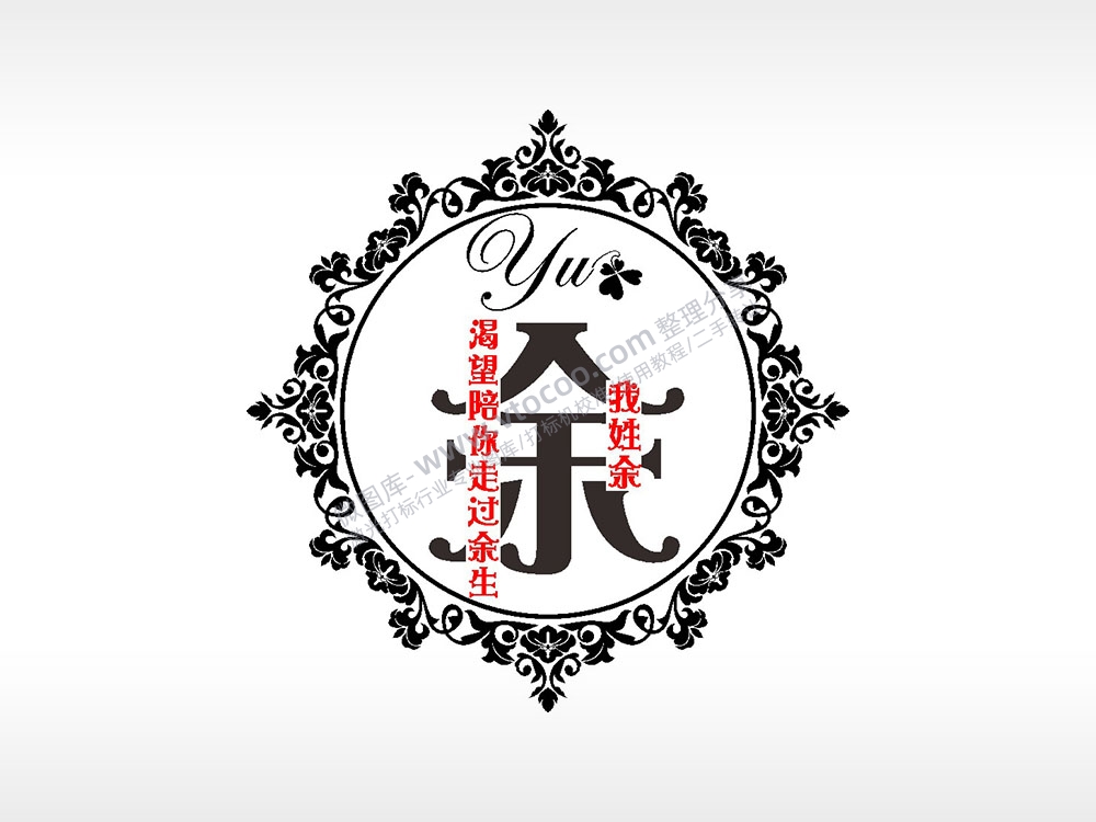 我姓余渴望陪你走过于生爱情姓氏AI8.0格式激光打标文件通用矢量图