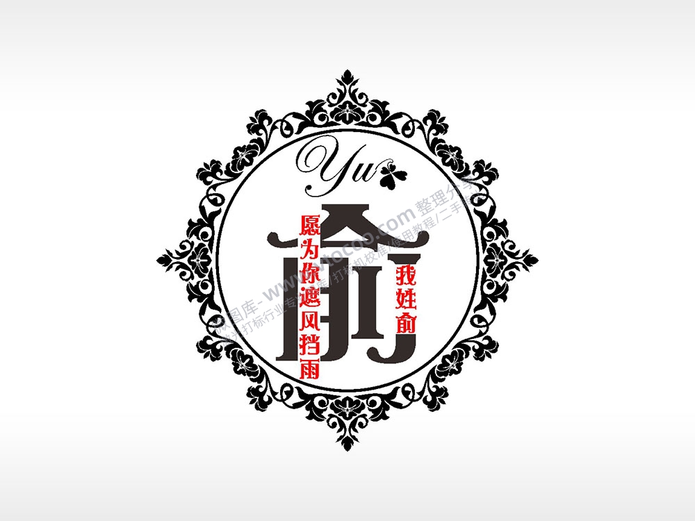 我姓俞愿为你遮风挡雨爱情姓氏AI8.0格式激光打标文件通用矢量图