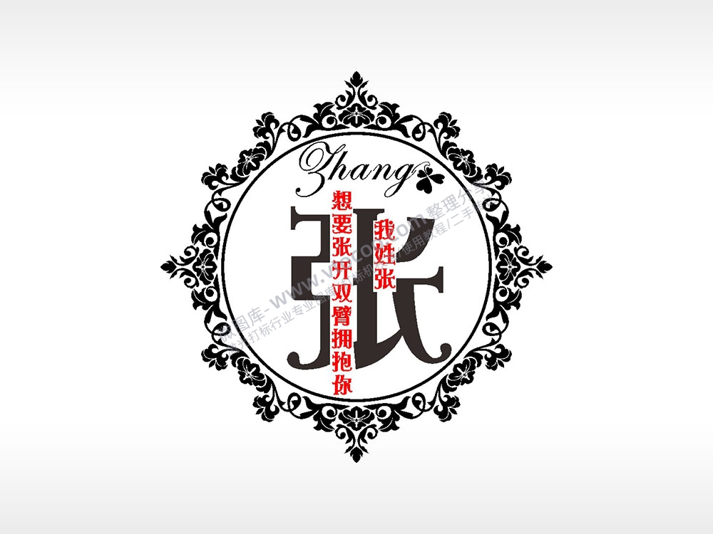 我姓张想要张开双臂拥抱你爱情姓氏AI8.0格式激光打标文件通用矢量图