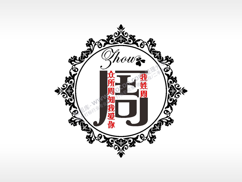 我姓周众所周知我爱你爱情姓氏AI8.0格式激光打标文件通用矢量图