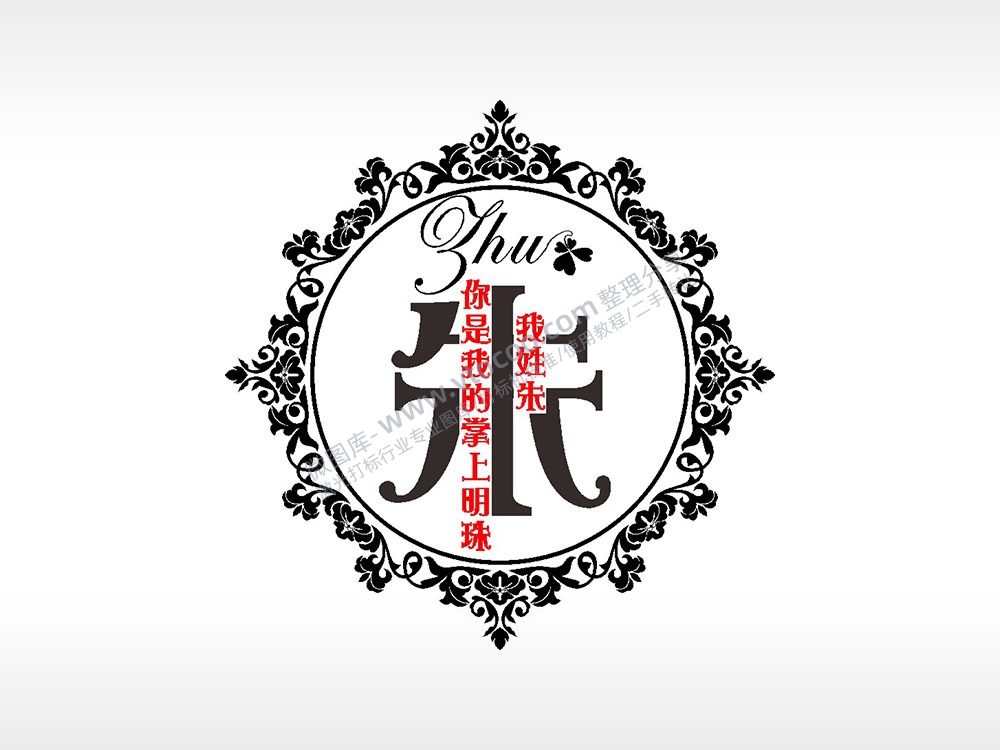 我姓朱你是我的掌上明珠爱情姓氏AI8.0格式激光打标文件通用矢量图