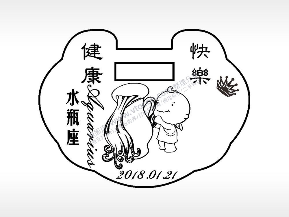水瓶座健康快乐长命锁AI8.0格式激光打标文件通用矢量图