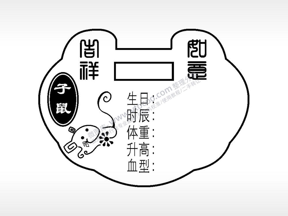 子鼠吉祥如意个人信息长命锁AI8.0格式激光打标文件通用矢量图