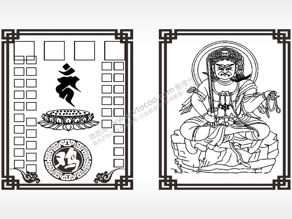 鸡不动明王十二生肖守护神AI8.0格式激光打标文件通用矢量图