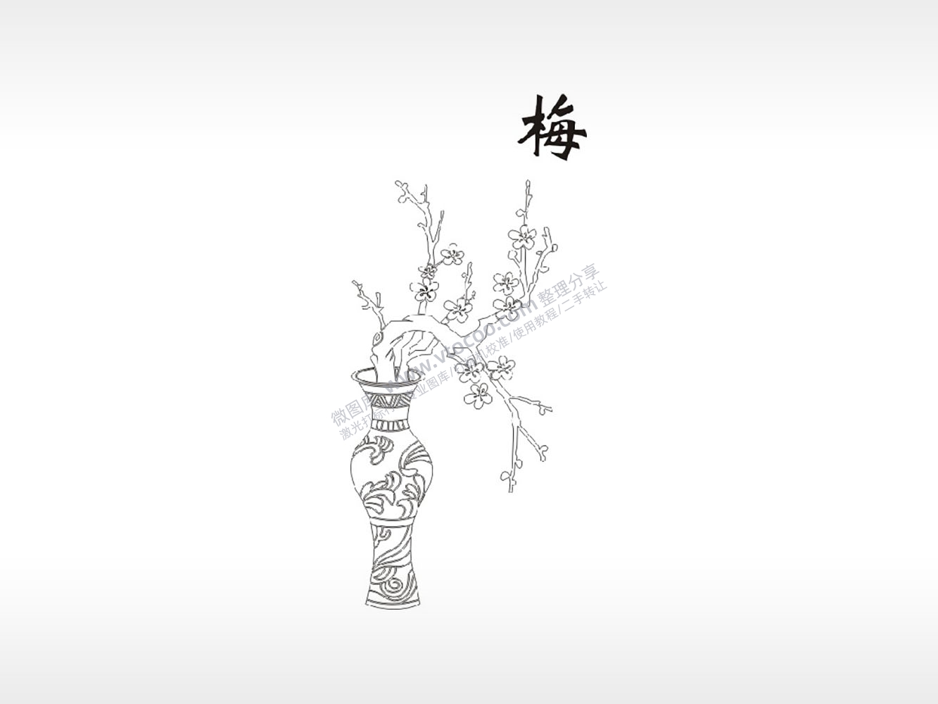 梅花瓶植物防丢钥匙牌PLT格式激光打标文件通用矢量图