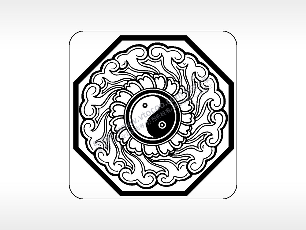 如意祥云边框太极阴阳八卦图AI8.0格式激光打标文件通用矢量图