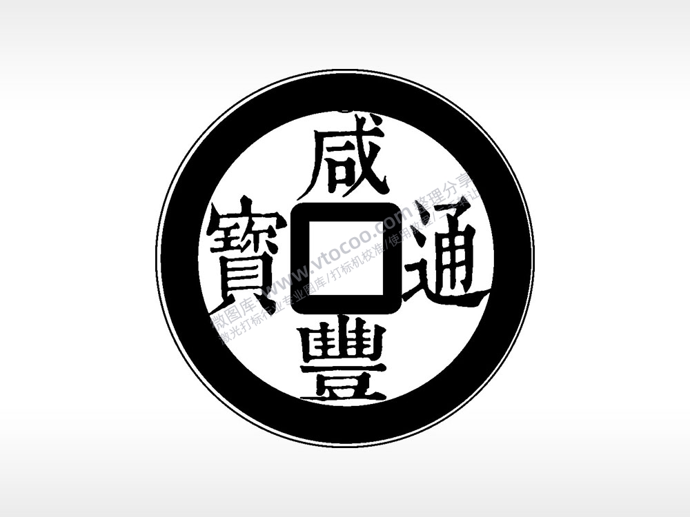 咸丰通宝古代钱币铜币AI8.0格式激光打标文件通用矢量图