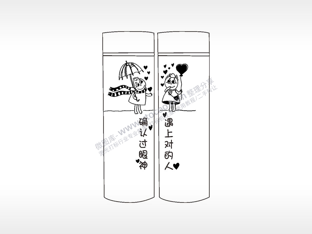遇上对的人确认过眼神情侣水杯AI8.0格式激光打标文件通用矢量图