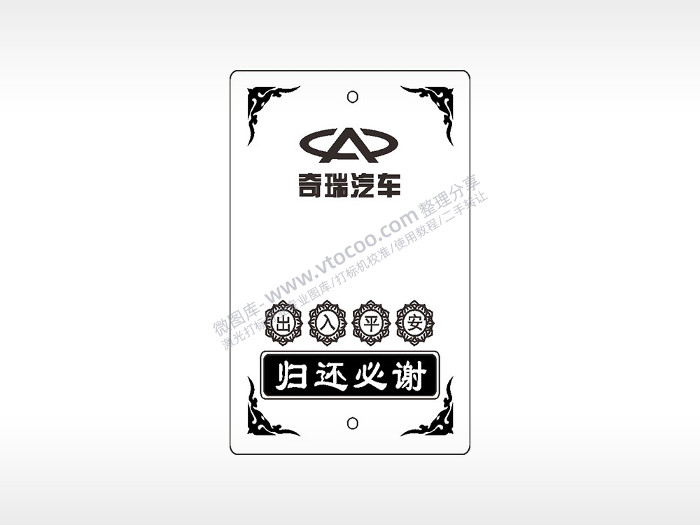 奇瑞出入平安归还必谢汽车挂件AI8.0格式激光打标文件通用矢量图