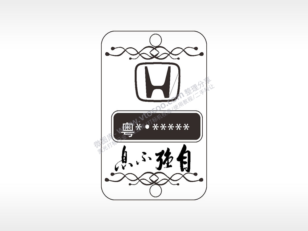 本田车牌号自强不息汽车挂件AI8.0格式激光打标文件通用矢量图