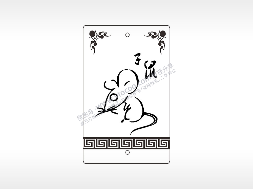 子鼠生肖如意边框汽车挂件AI8.0格式激光打标文件通用矢量图
