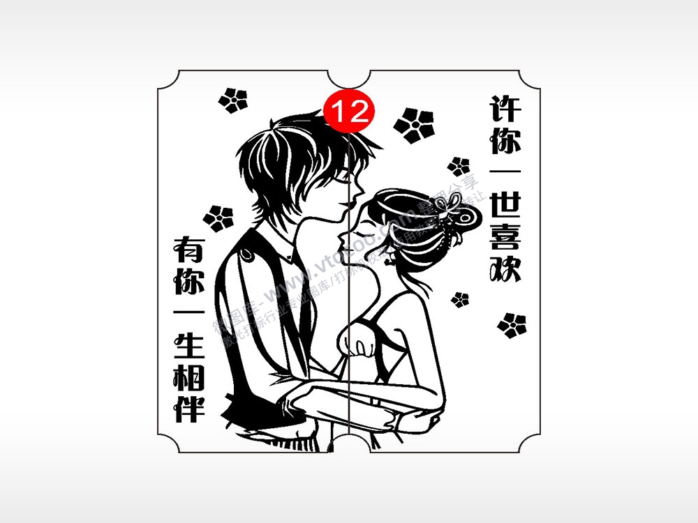 许你一世喜欢有你一生相伴恋爱情侣AI8.0格式激光打标文件通用矢量图