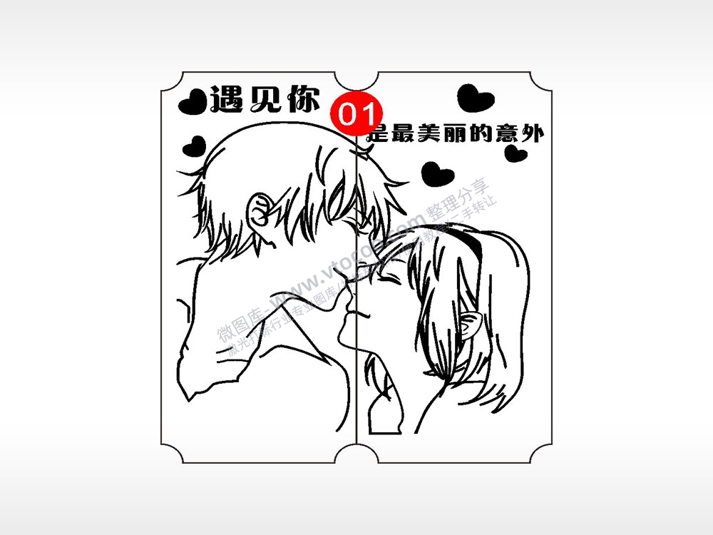 遇见你是最美丽的意外恋爱情侣AI8.0格式激光打标文件通用矢量图