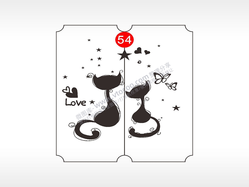 猫咪love爱心蝴蝶恋爱情侣AI8.0格式激光打标文件通用矢量图