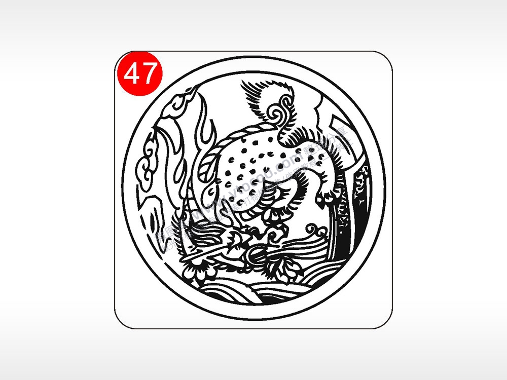 招财纳福麒麟貔貅神兽图腾AI8.0格式激光打标文件通用矢量图