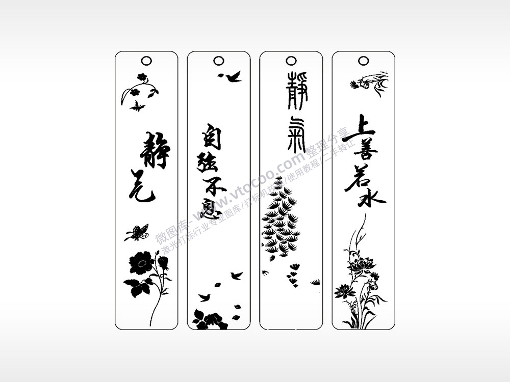 静气自强不息上善若水古风书签AI8.0格式激光打标文件通用矢量图