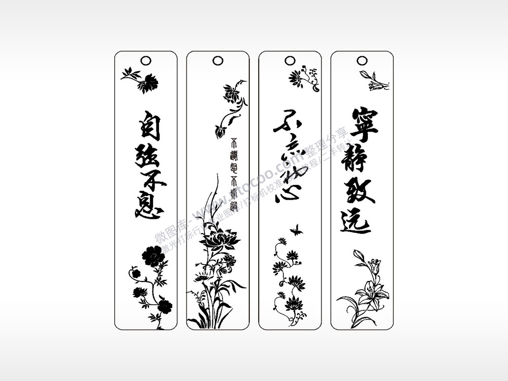 自强不息不忘初心宁静致远古风书签AI8.0格式激光打标文件通用矢量图