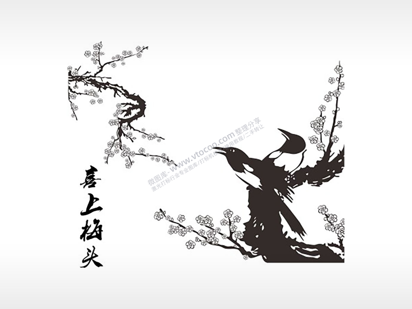 喜上梅头泼墨山水画匾额AI8.0格式激光打标文件通用矢量图