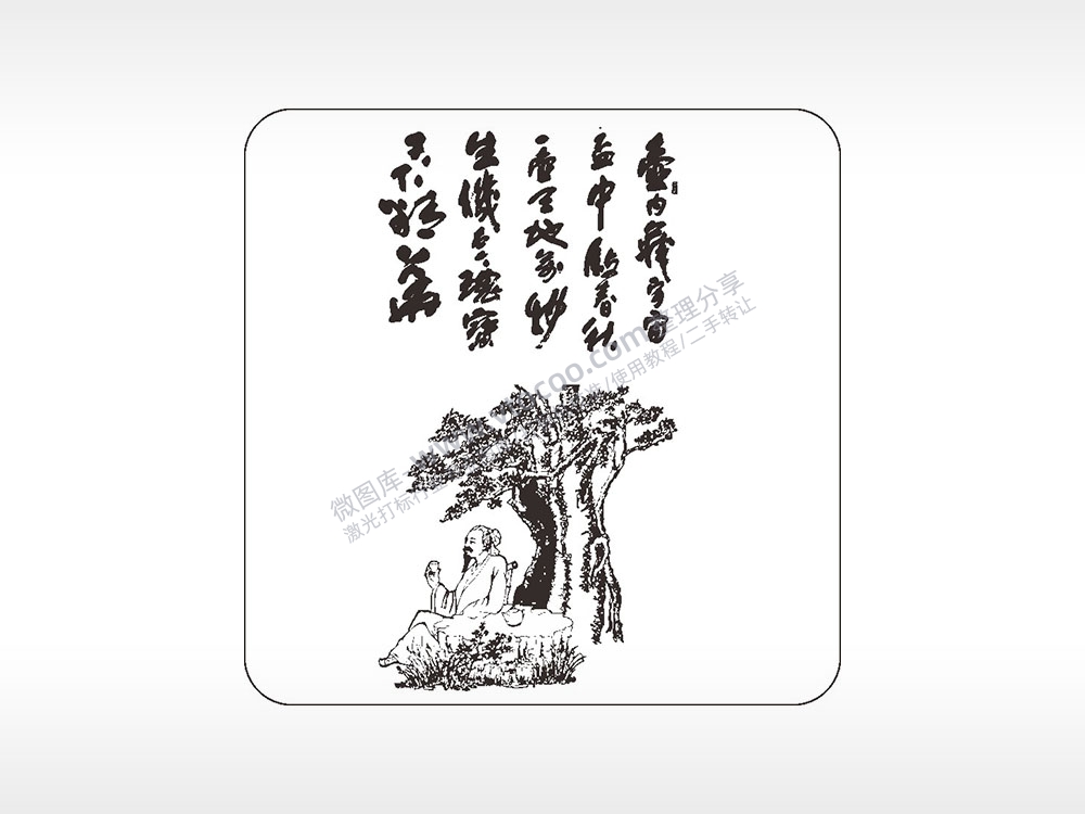 中国水墨书画品茶道文化AI8.0格式激光打标文件通用矢量图