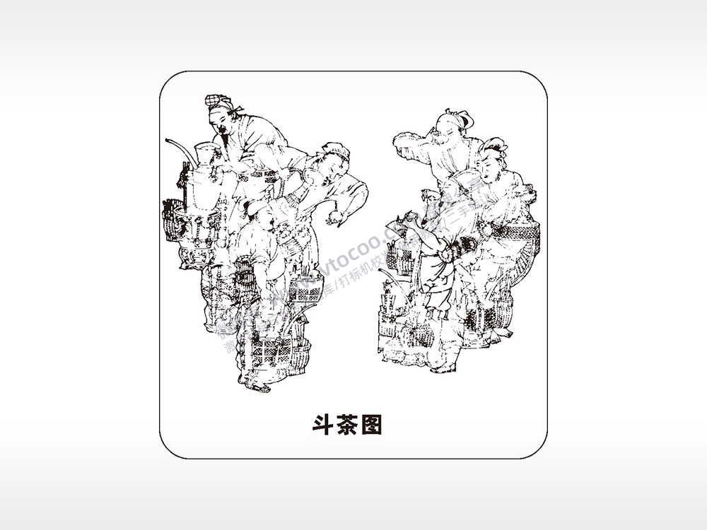 斗茶图茶道文化AI8.0格式激光打标文件通用矢量图
