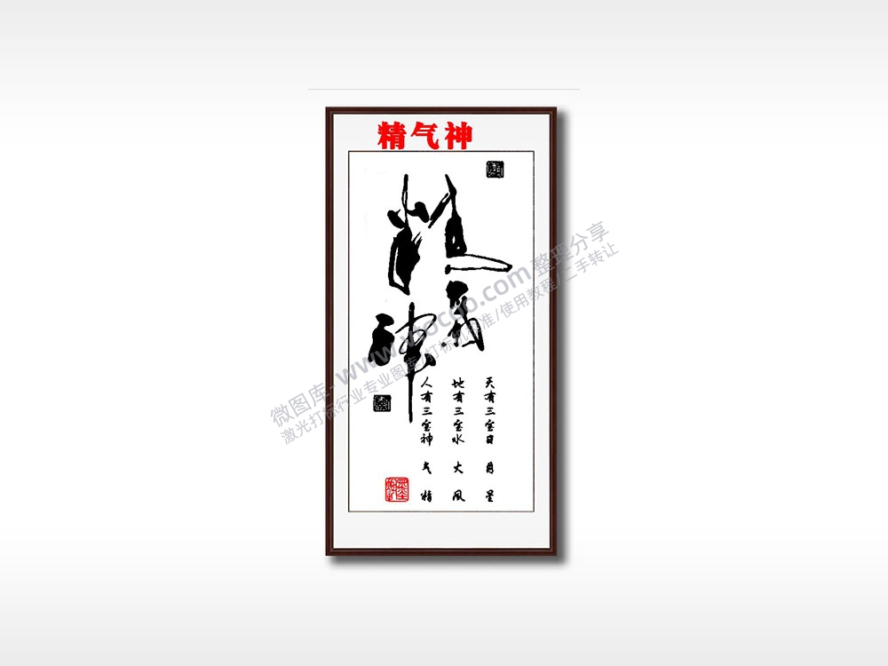 精气神人地天毛笔书法竖版AI8.0格式激光打标文件通用矢量图