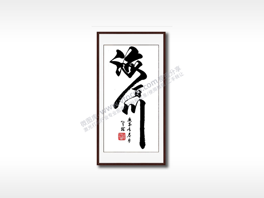 海纳百川毛笔书法竖版AI8.0格式激光打标文件通用矢量图