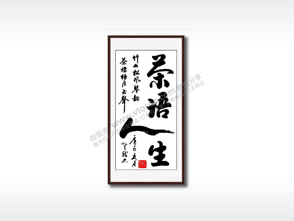 茶语人生毛笔书法竖版AI8.0格式激光打标文件通用矢量图