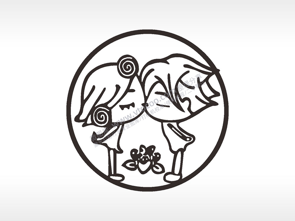 情侣亲嘴爱情游戏硬币园项链AI8.0格式激光打标文件通用矢量图