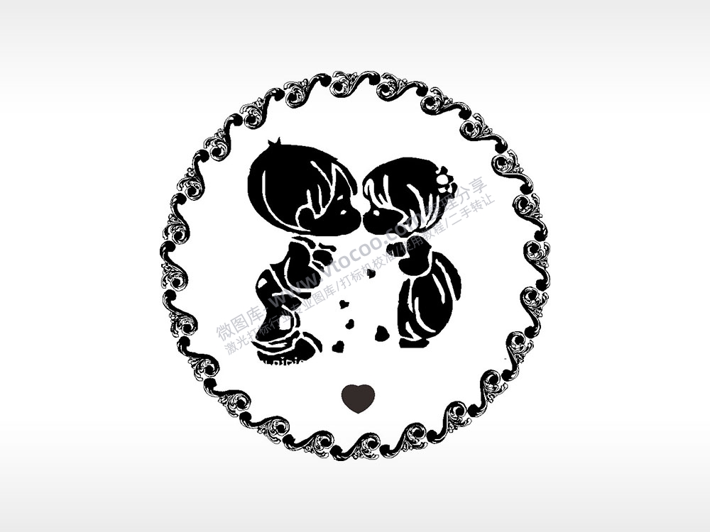情侣爱情花瓣边框游戏硬币园项链AI8.0格式激光打标文件通用矢量图