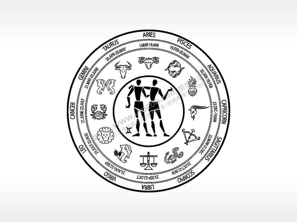 星座双子座游戏硬币园项链AI8.0格式激光打标文件通用矢量图
