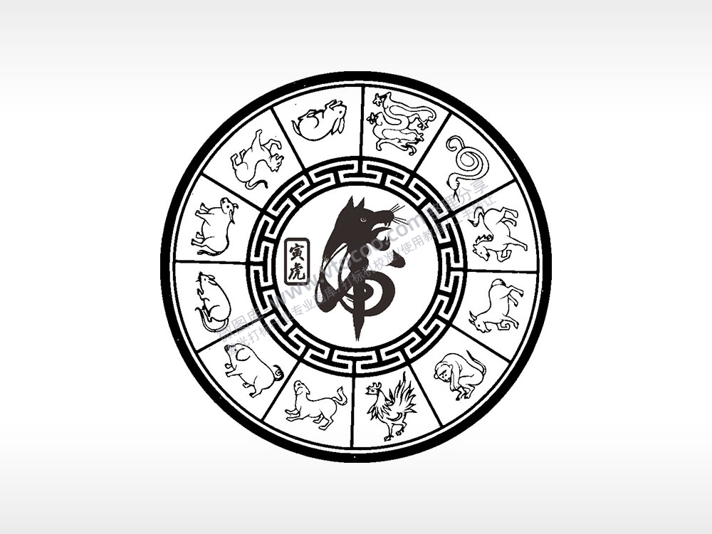 十二生肖寅虎游戏硬币园项链AI8.0格式激光打标文件通用矢量图