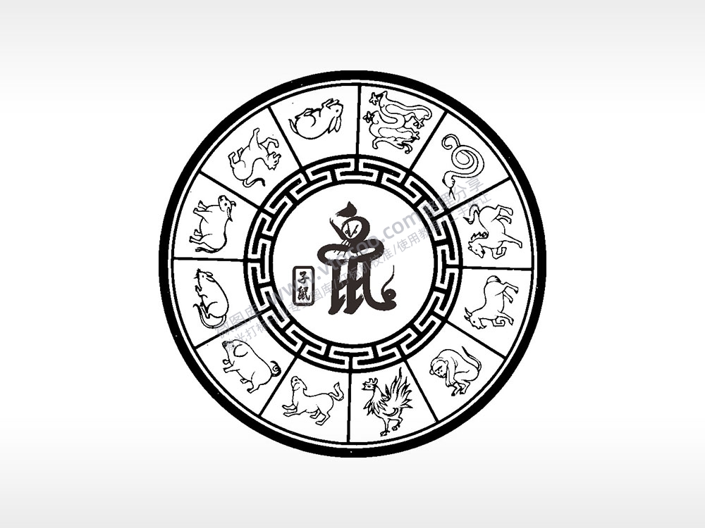 十二生肖子鼠游戏硬币园项链AI8.0格式激光打标文件通用矢量图
