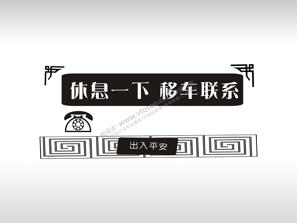 休息一下移车联系出入平安临时停车挪车电话牌通用plt格式激光打标文件