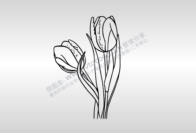 百合花手绘插画AI8.0格式激光打标文件通用矢量图