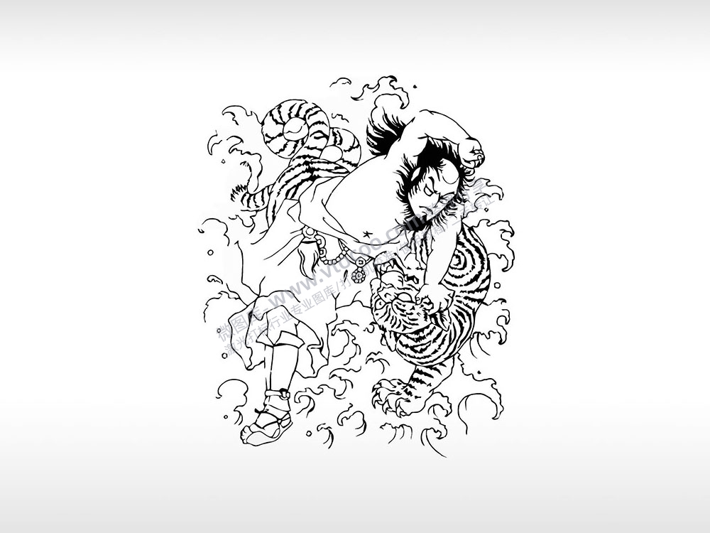 老虎武松打虎AI8.0格式激光打标文件通用矢量图