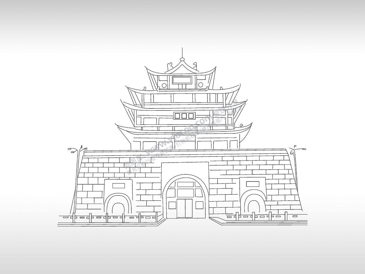 光岳楼古城楼聊城古文化遗产古建筑激光打标矢量图文件