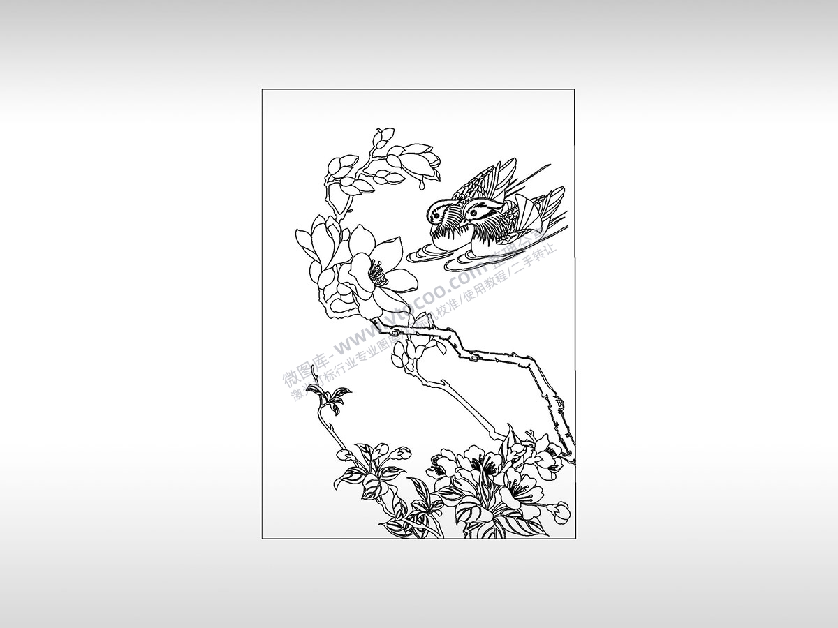 喜鹊报喜花儿戏水PLT格式激光打标文件通用矢量图