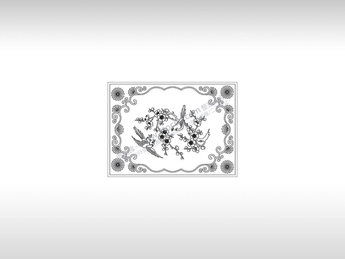 春天梅花枝百花齐放鸟儿戏耍PLT格式激光打标文件通用矢量图