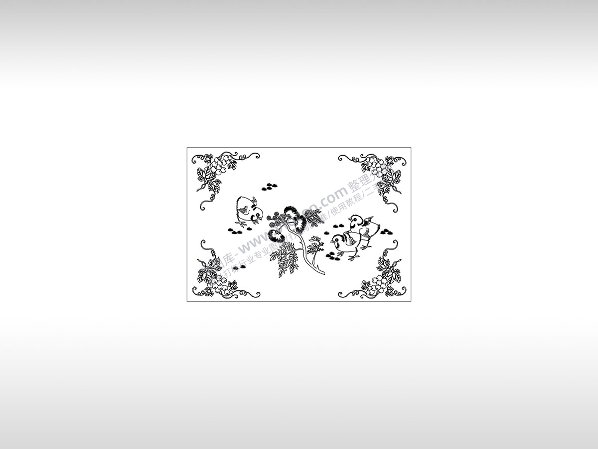 小鸡啄米觅食果树藤米唐伯虎PLT格式激光打标文件通用矢量图