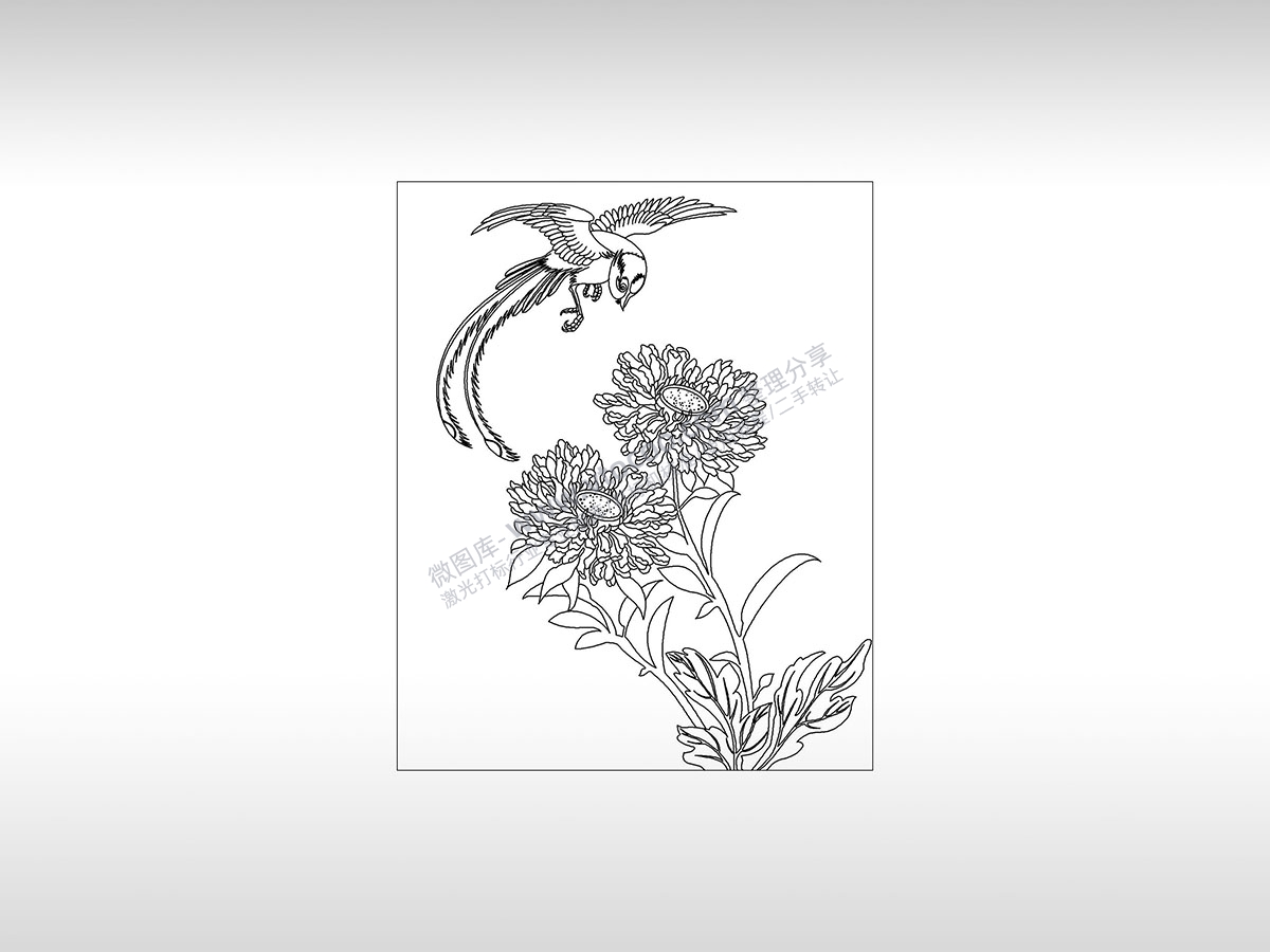 花鸟图燕子爱菊花自然美景PLT格式激光打标文件通用矢量图