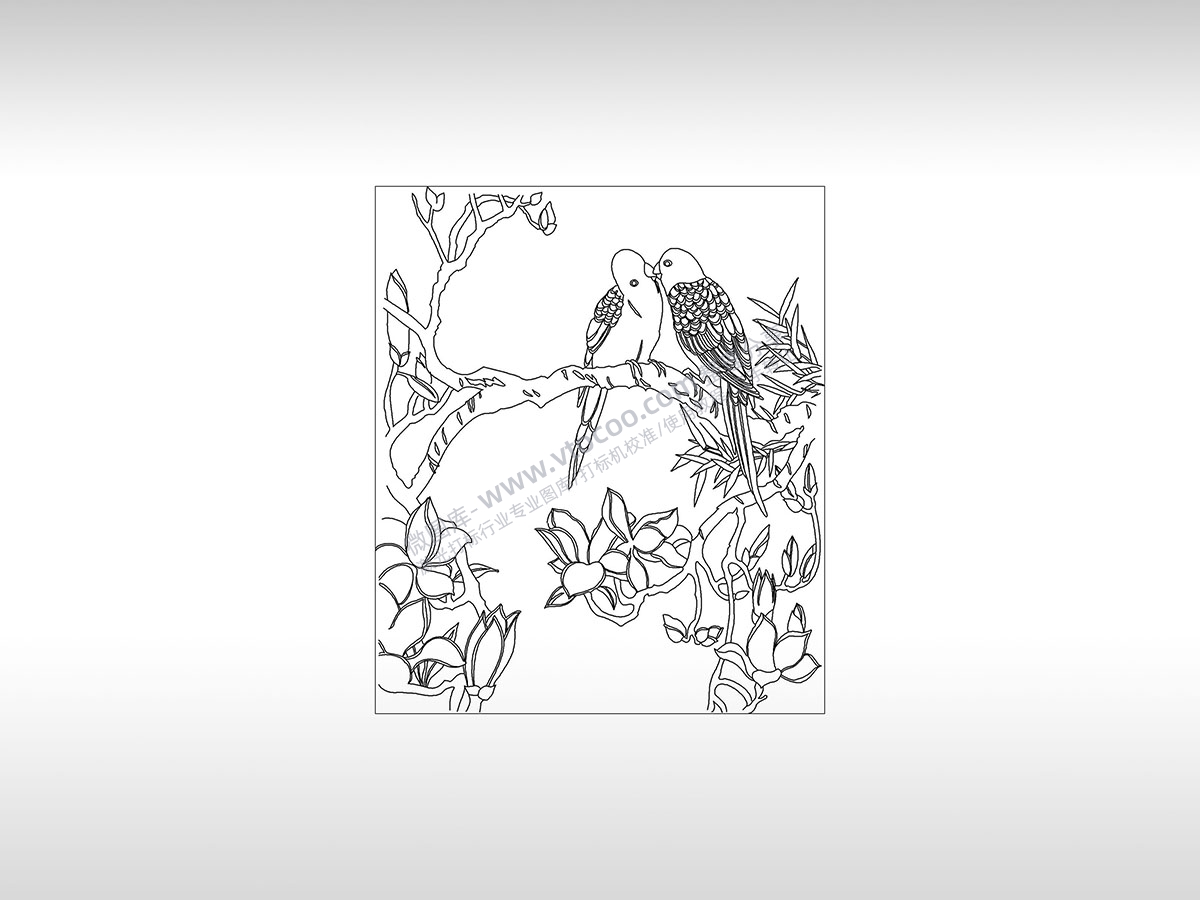 花鸟图比翼双飞亲嘴喜庆PLT格式激光打标文件通用矢量图