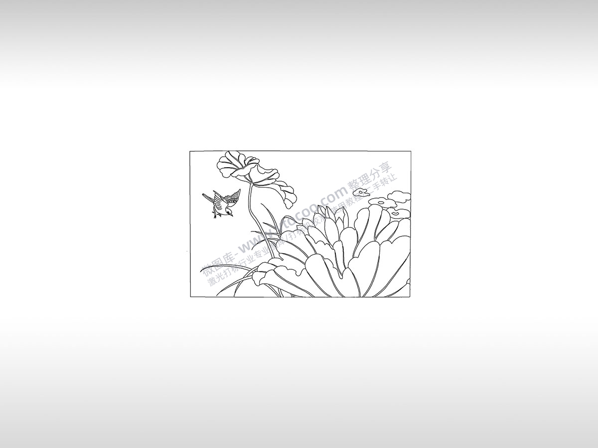 花鸟图荷花荷塘返巢PLT格式激光打标文件通用矢量图