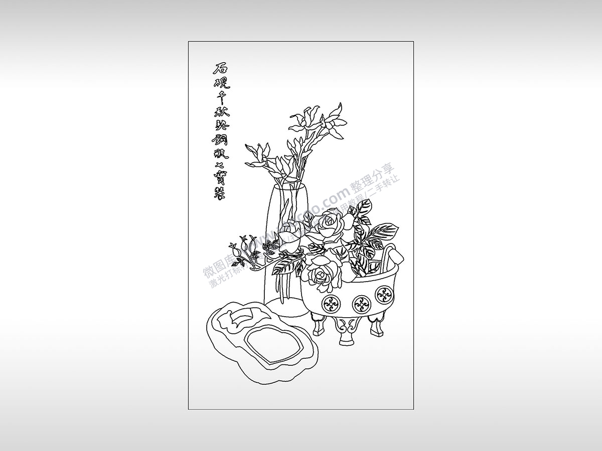 百合毛笔研墨花盆七宝装PLT格式激光打标文件通用矢量图