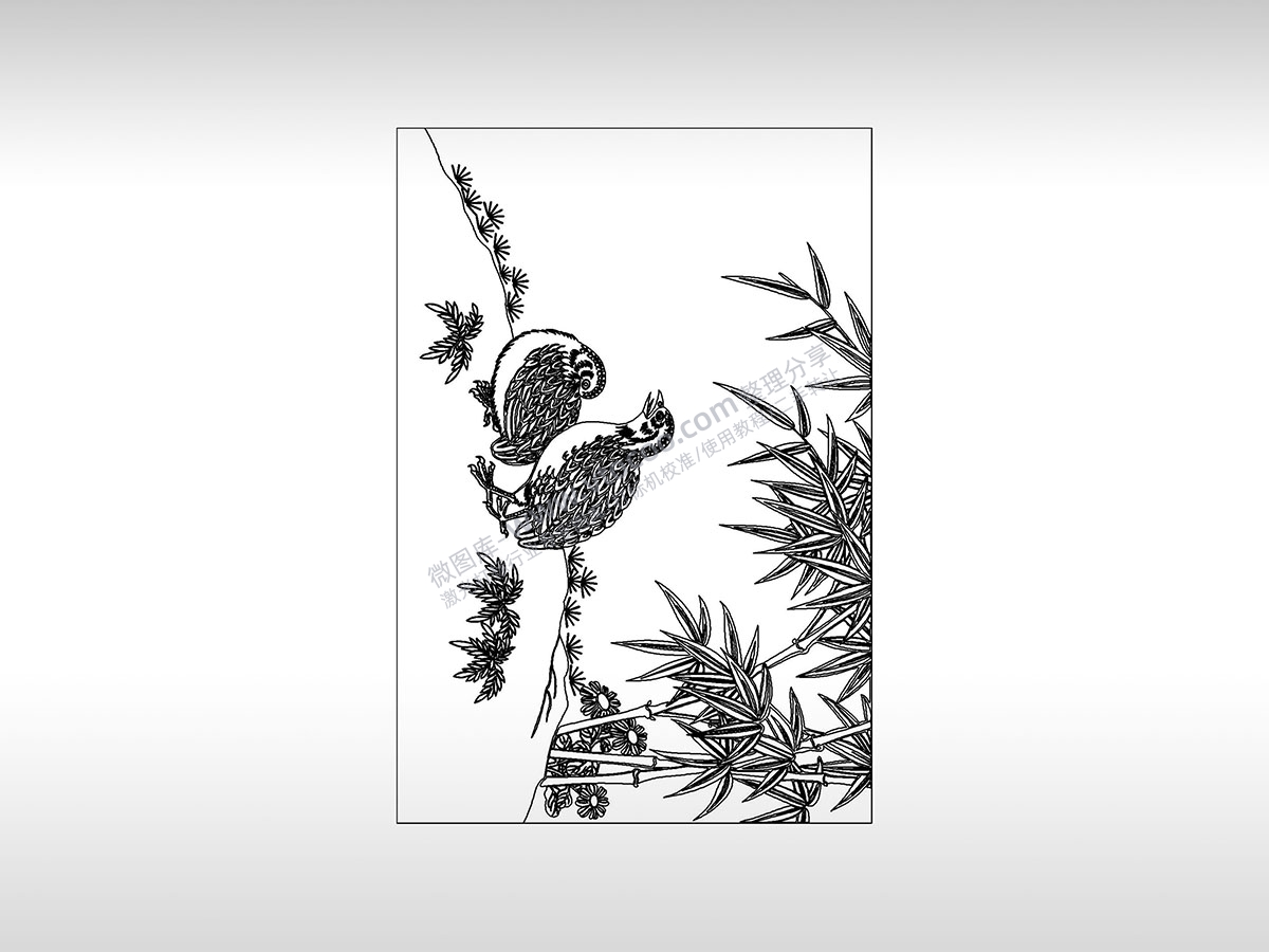鸟儿觅食竹子土地自然风景PLT格式激光打标文件通用矢量图
