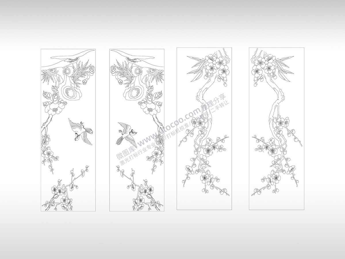 中国白描花鸟图吉祥如意报喜PLT格式激光打标文件通用矢量图