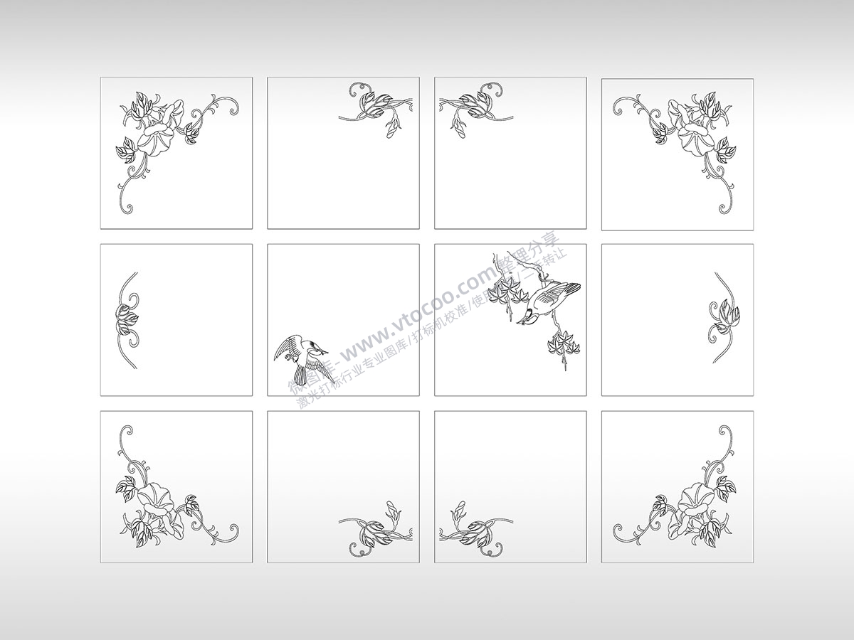 门框花鸟图喇叭花PLT格式激光打标文件通用矢量图